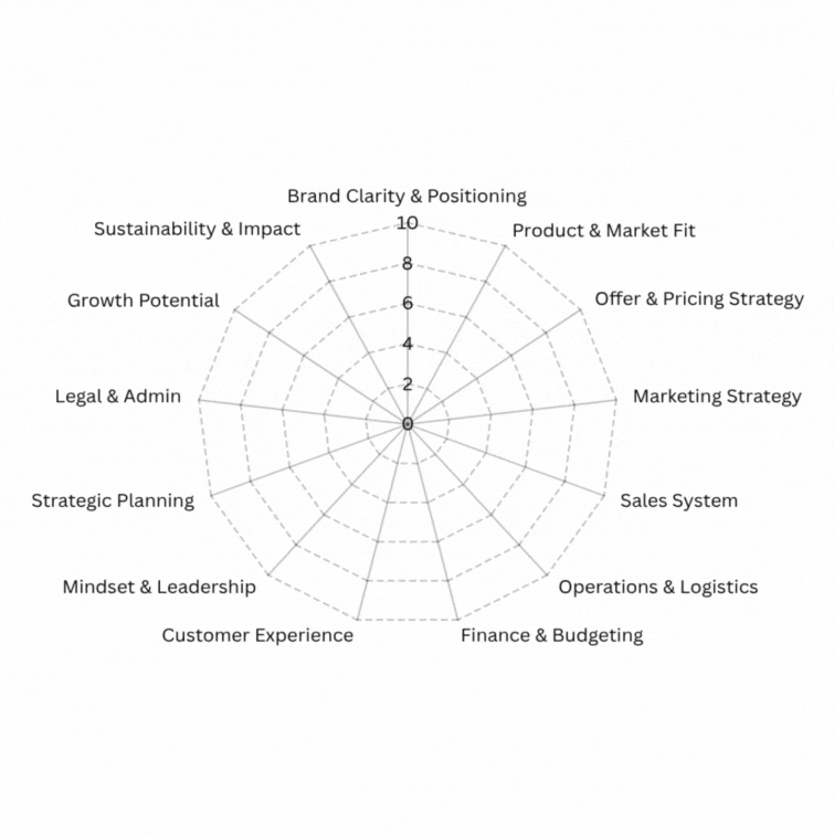 Every founder starts here. We map your brand’s performance across 12 key pillars — and build your strategy to drive your brand forward.